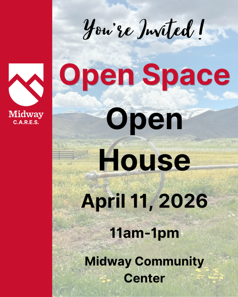 Midway residents are invited to attend an Open Space Open House on Saturday, April 11, 2026, from 11:00 AM to 1:00 PM at the Midway Community Center.